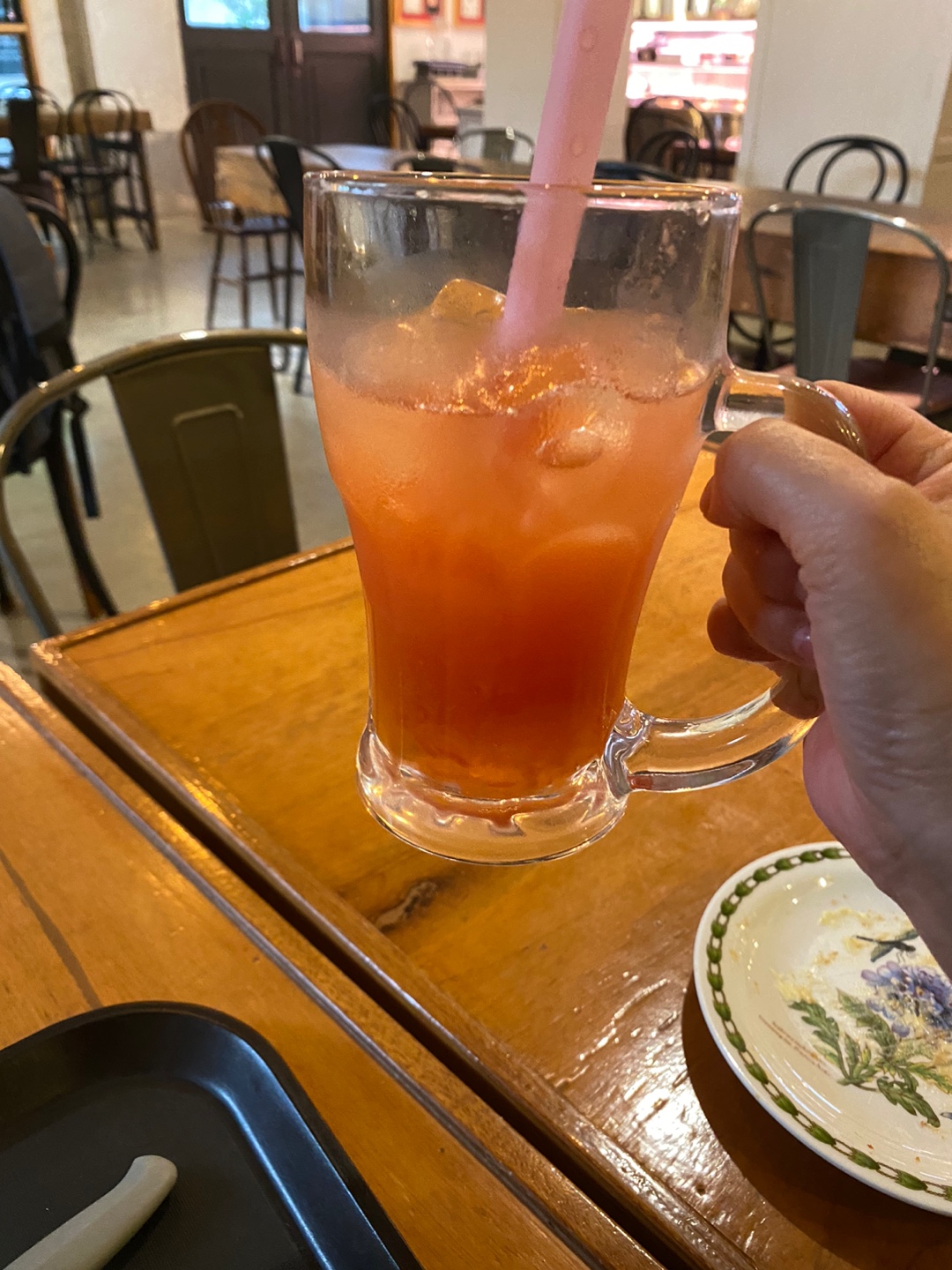 음료는 라떼와 자몽에이드를 먹엇습니다. 포크와 나이프도 예뻐요.