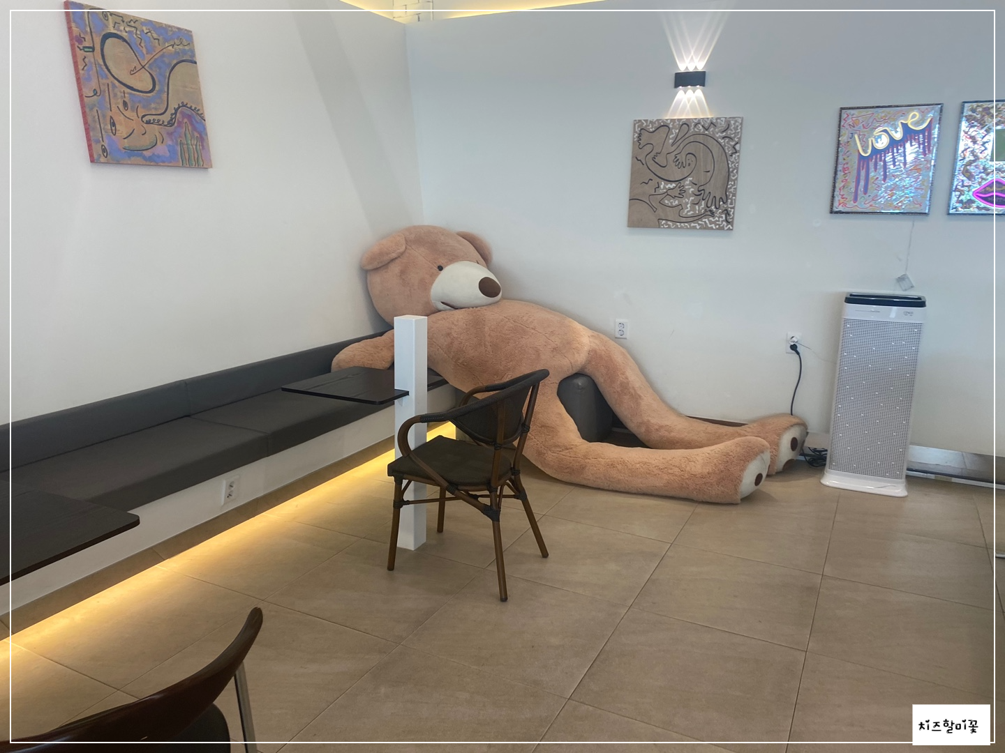 인테리어로 곳곳에 이렇게 큰 곰인형이 있어요.