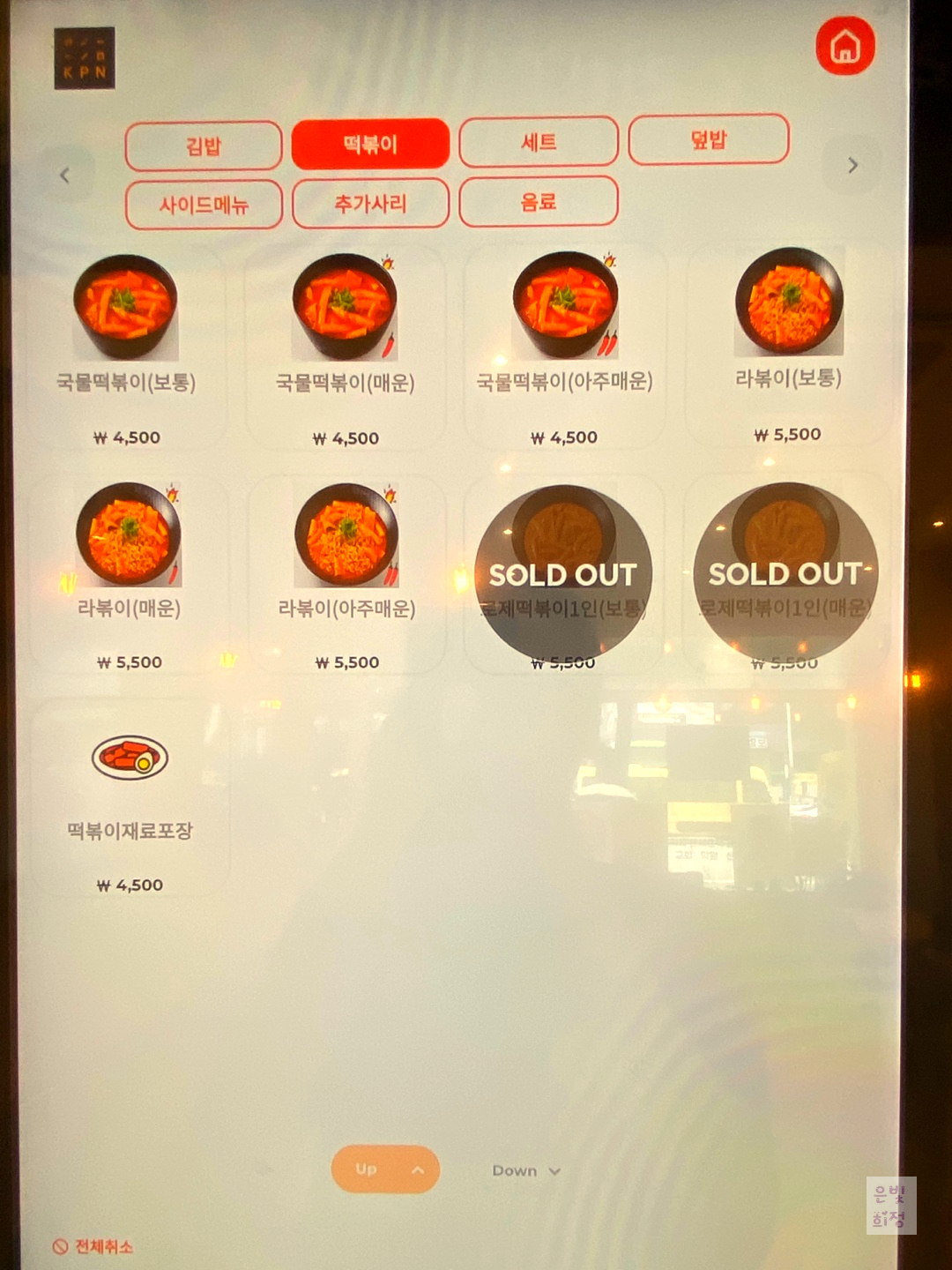 메뉴판이다. 떡볶이는 맵기조절이 된다.