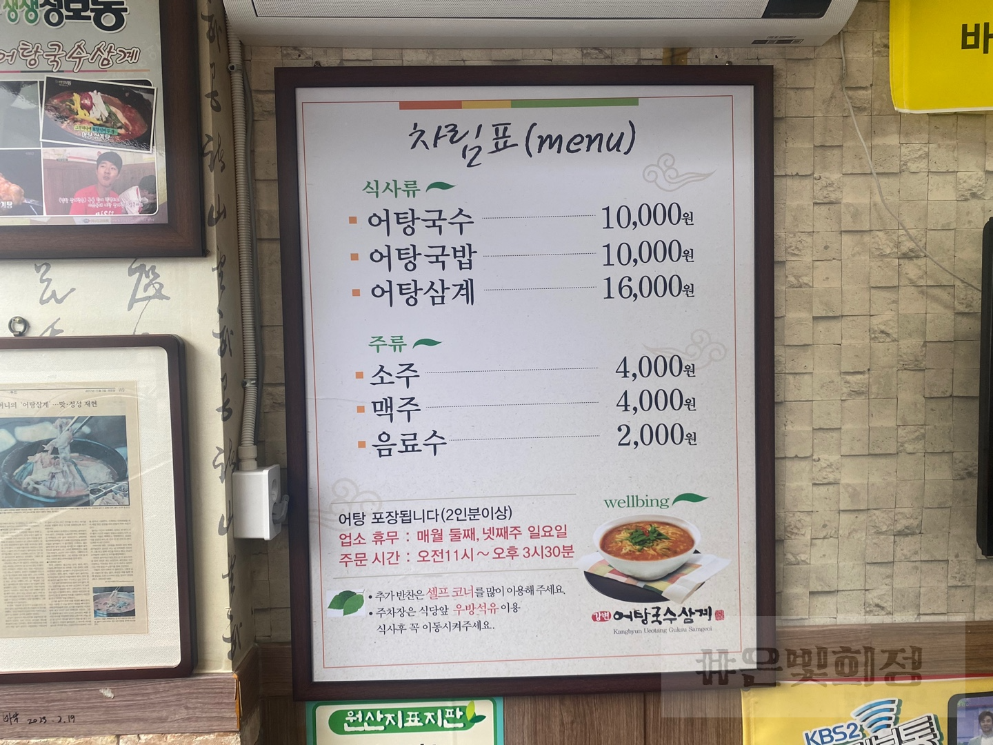 바로 이곳 입니다. 보셨나요? 저는 그쪽으로 잘 안 돌아가 안 돌아다녀서 잘 모르겠는데 와보니 금방 찾을 수 있었어요. 오래된 집이고 맛도 정말 맛있답니다. 그런데 11 시부터 오후 네 시까지만 하네요. 그래서 일찍 가셔야 합니다. 그리고 점심시간에 대부분 어탕 삼계국수가 다 팔리기 때문에 점심시간 지나서 갈려면 어탕국수만 먹을 수 있습니다. 어탕 삼계국수가 정말 인기가 좋은 메뉴인 것 같아요. 다들 그것만 찾으신 것 같습니다. 아무래도 건강하며 보양식이라서 그런 것 같아요. 인테리어는 조금 오래됐어요. 오래된 인테리어 같아요. 벽에 붙은 액자를 봐도 좀 오래되었다는 것을 알려 주고 있어요. 대구 대표 도시 숲이 생기기 전부터 있었던 것 같아요. 예전에 반려동물 행사로 이곳에 온 적이 있다가 봤는데 정말 어떤 맛인지 궁금했었거든요. 그런데 드디어 가 보게 되어서 너무 기뻤답니다. 그리고 맛있었어요. 안에는 생생 정보통에 출연한 사진도 있어요. 사장님이 아직도 같이 계세요. 보통 저렇게 유명한 데는 사장님이 없잖아요. 그런데 여기는 사장님이 아직도 계십니다. 포장도 되는데, 포장은 오후 3시 30분까지만 된다고 합니다.