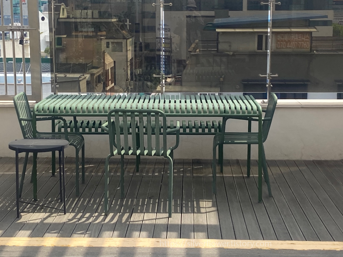 하늘 정원에도 이렇게 길다란 테이블이 있습니다.