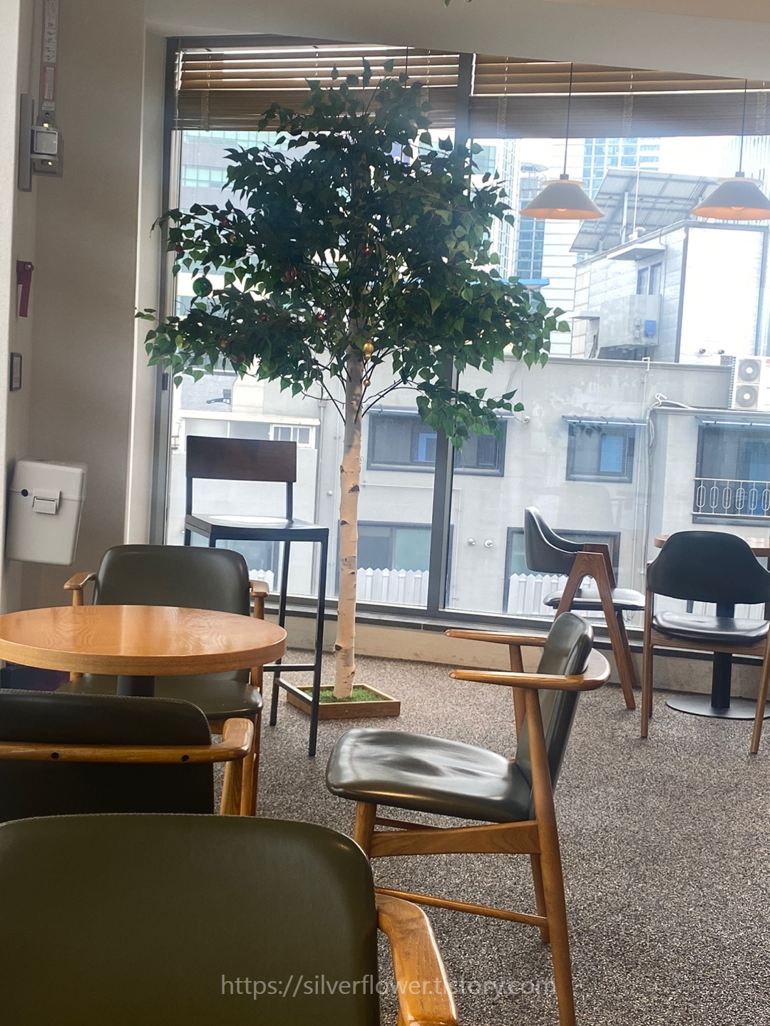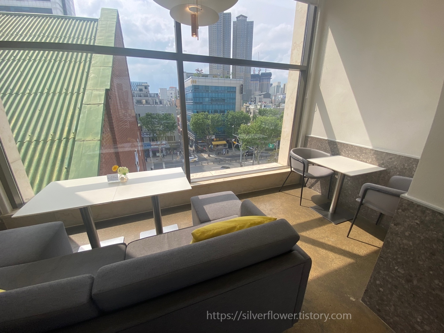 오 층은 통창으로 되어 있어서 바깥 풍경을 볼 수 있습니다.