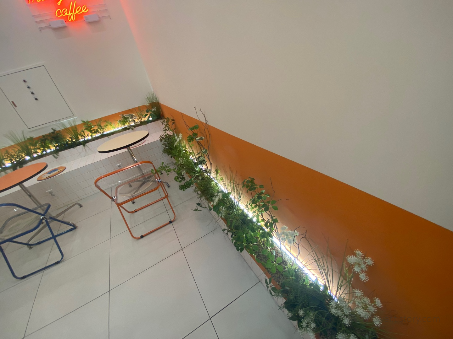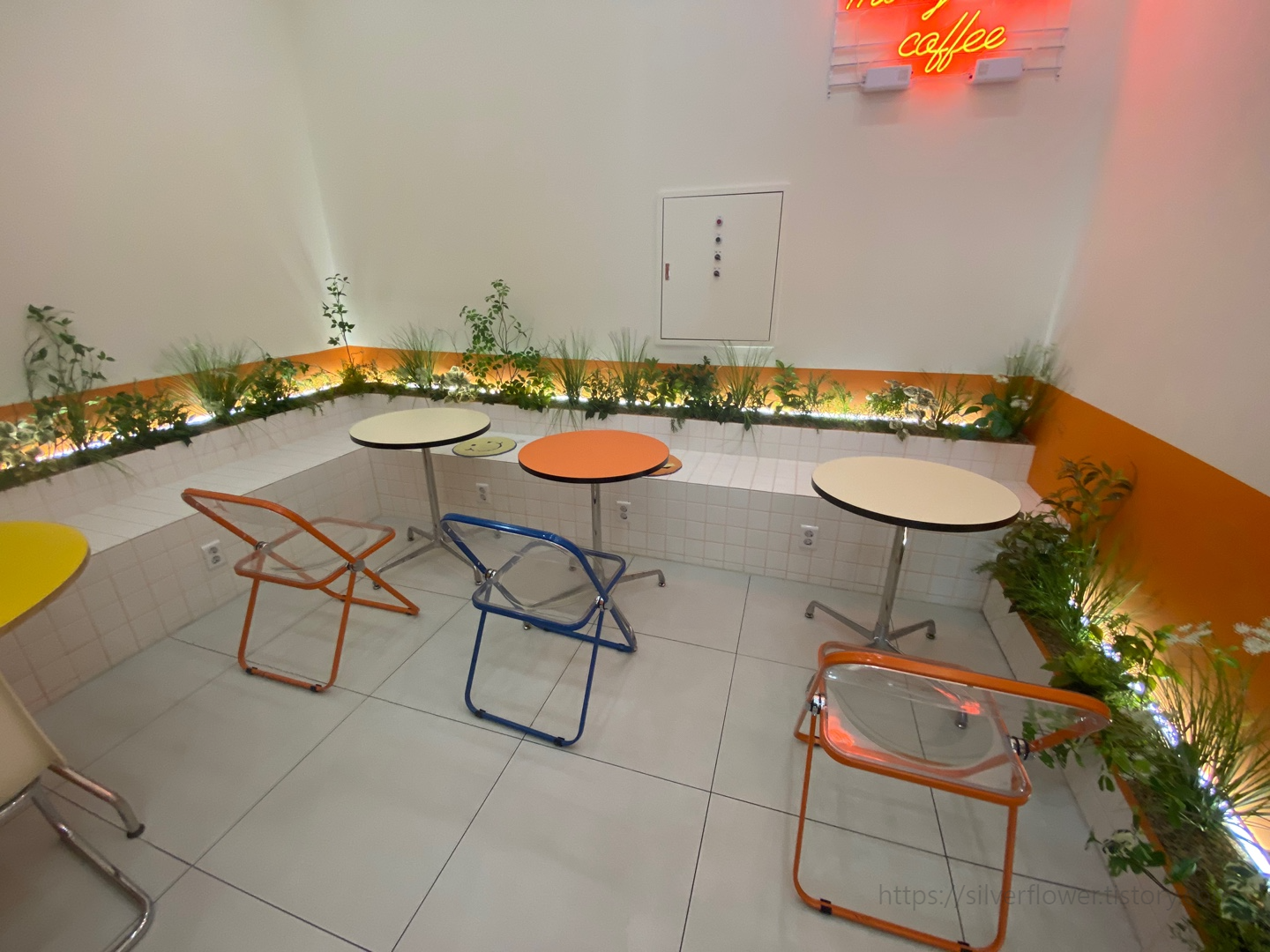 벽을 의자 삼아 테이블을 배치하는 곳이 많아 졌어요.