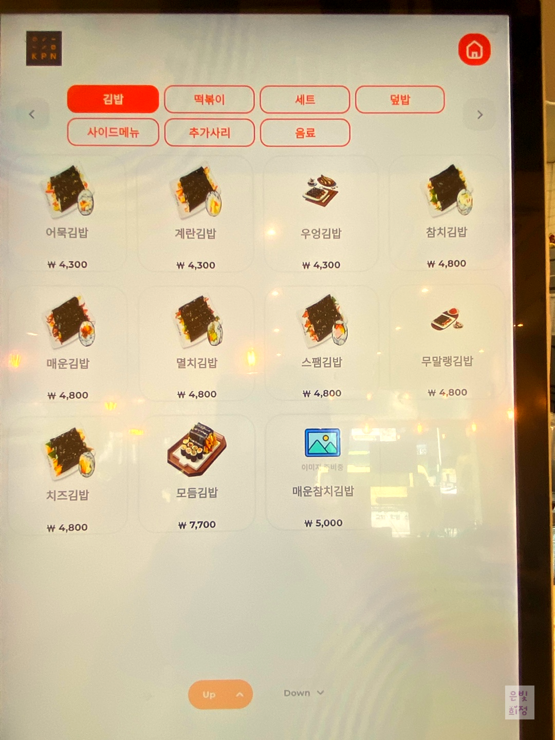 메뉴판이다. 떡볶이는 맵기조절이 된다.