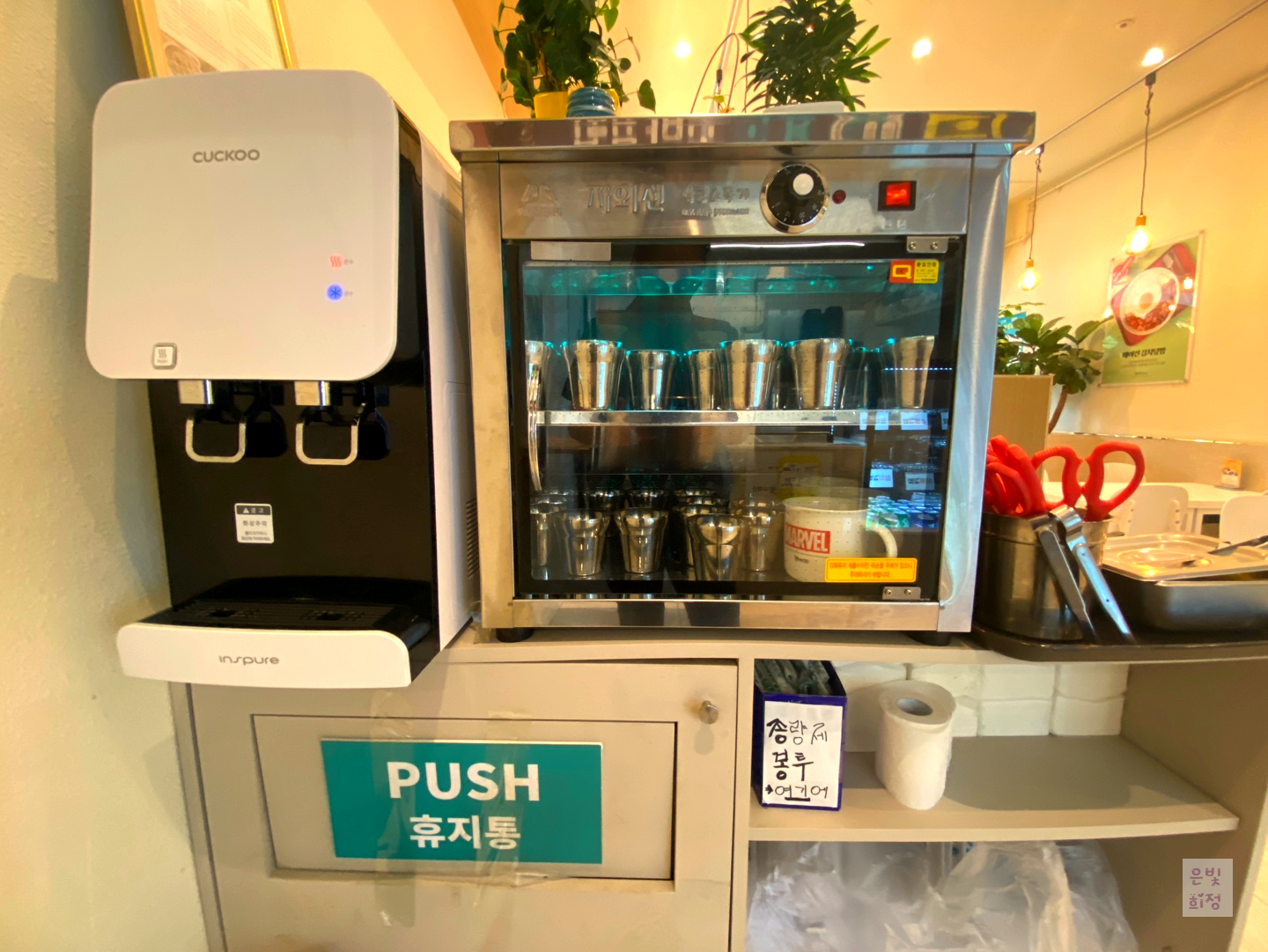 김밥은 주방 앞에 포장되어 있다.